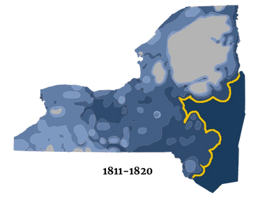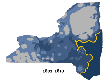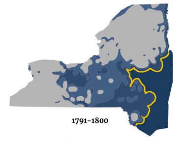 Most of the 800,000 persons who moved out of New England settled in or passed through New York on their way west after the Revolutionary War.